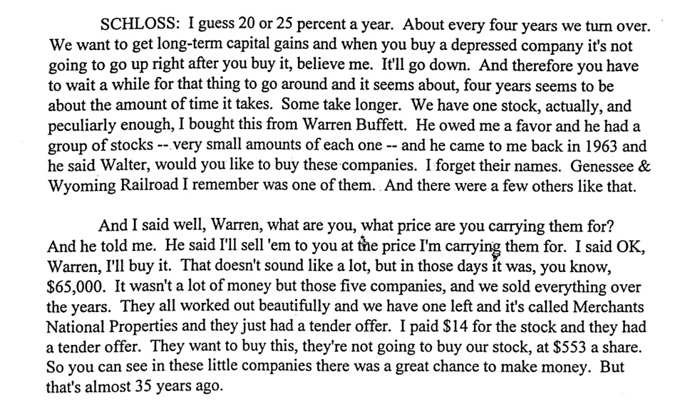 What had Schloss done to deserve such a favor from the greatest investor of all time?