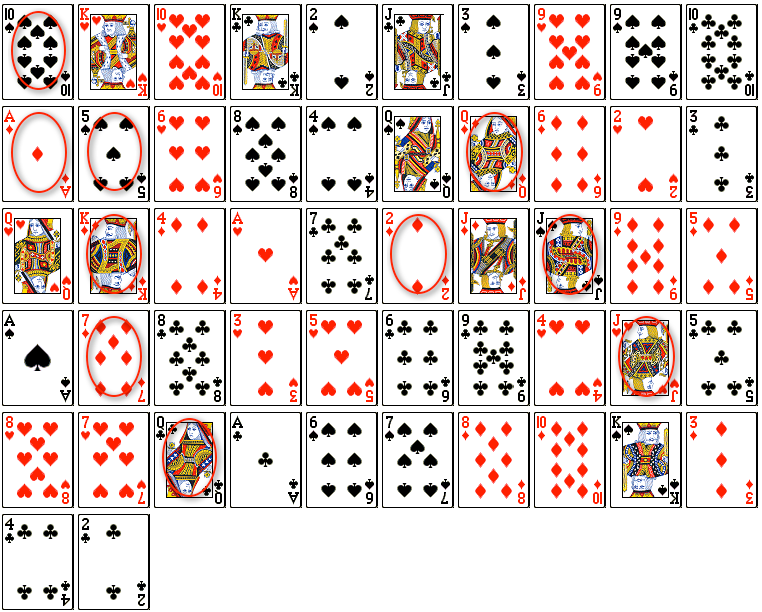 out the rest of the deck face up into a pile. Your friend counts off in her head (silently) the number on her card (or spells the card if it is a face card, like K-I-N-G). When she gets to her number, that becomes her new card (the ace of diamonds in the deck above). She
