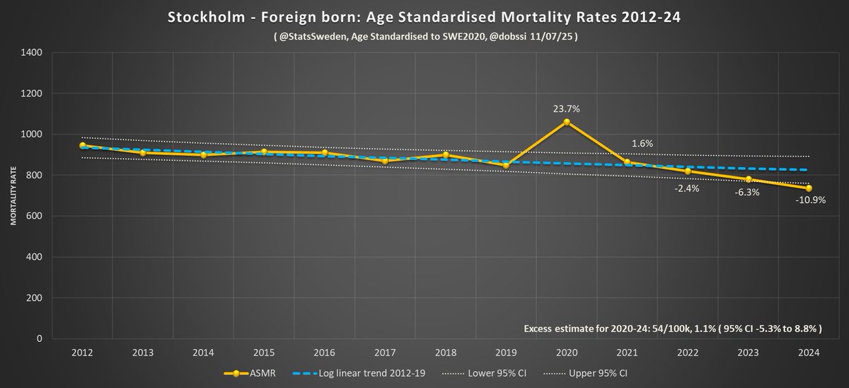 The first thing to note about the data that @SvD used is that it's not adjusted for age or population changes. It is simply the number of deaths in 2020-22 measured against the number of deaths in 2017-19.