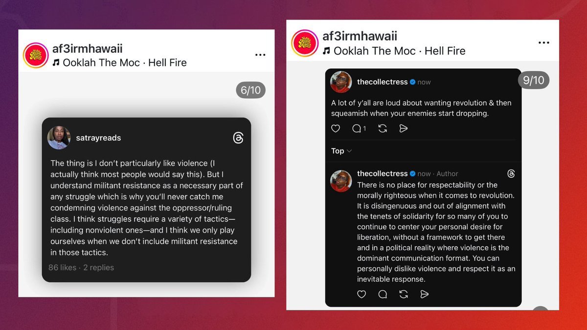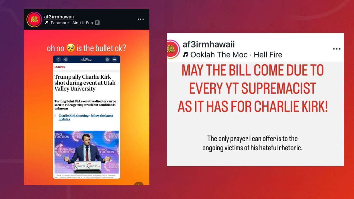 🧵2/ These AF3IRM posts (from Khara Jabola-Carolus and Nadine Ortega’s crew) and Kaniela Ing’s hateful and absurd posts after the murder of Charlie Kirk set off my deep dive into their connections! Specifically it was this 1 post hours after the incident that stated "oh no is the bullet ok?" and then cane "MAY THE BILL COME DUE TO EVERY YT SUPREMACIST AS IT HAS FOR CHARLIE KIRK!"—even threw in prayers for victims of hate.