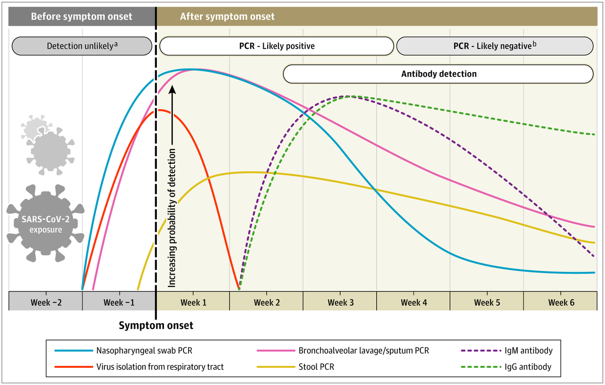 Perhatikan diagram ini.. Pcr Test itu adalah garis warna biru.. Lihat aktivasinya sampai minggu ke 3 masih tinggi kan? Landai di minggu ke 4