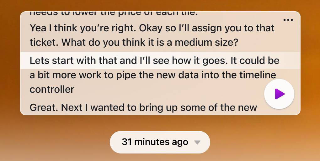 You can capture audio from any type of meeting (Google Meet, Microsoft Teams, Slack huddles, Webex, Discord, etc). It also works great for podcasts, Youtube videos, or notes to yourself. Just open Rewind and you’ll see a transcript wherever you were recording audio.