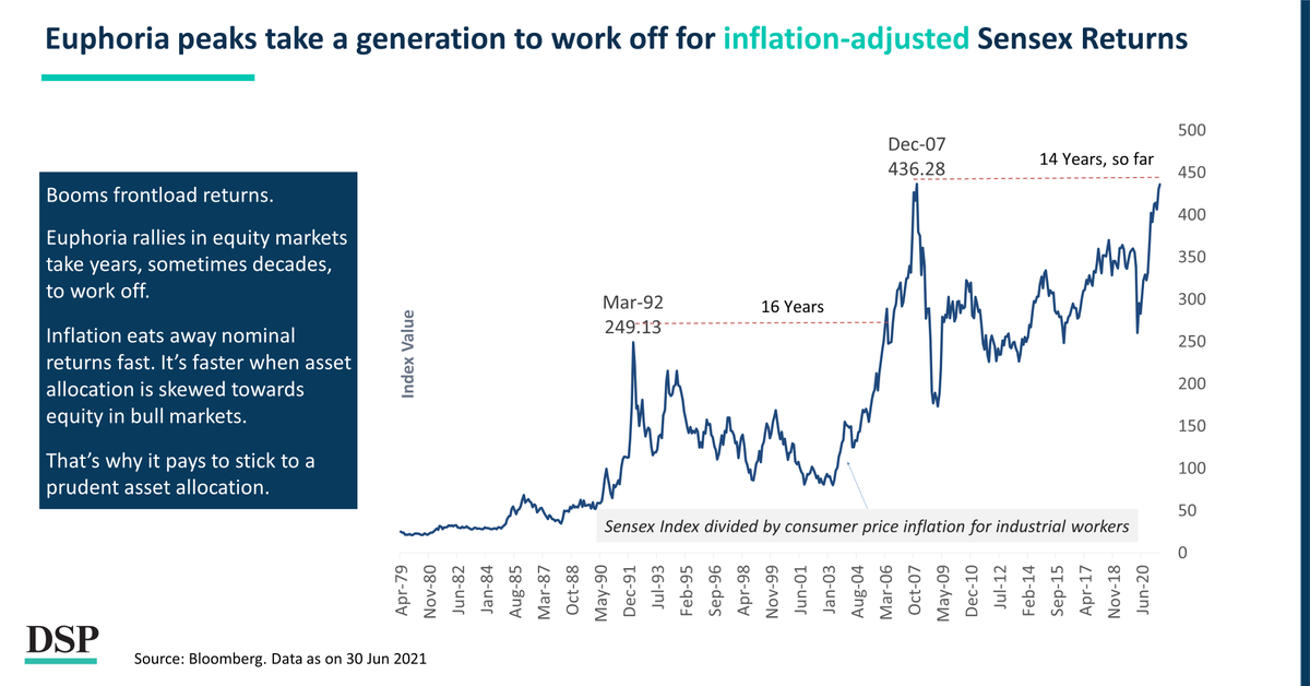 When equity prices rise exponentially, they reflect euphoric investor sentiment. This causes future real returns adjusted for inflation to be subpar for a long time.