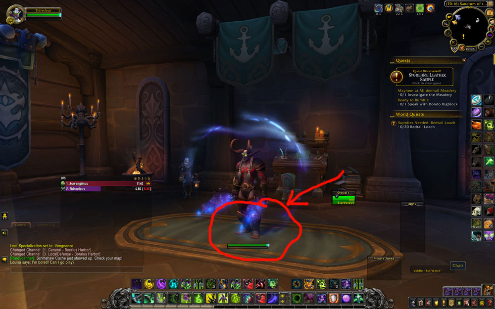 LOW - Clipping/Collision - Boralus - Sanctum of the Sages : Player character's feet clip through green rugs in the Sanctum of the Sages portal room in Boralus - 5 of 5