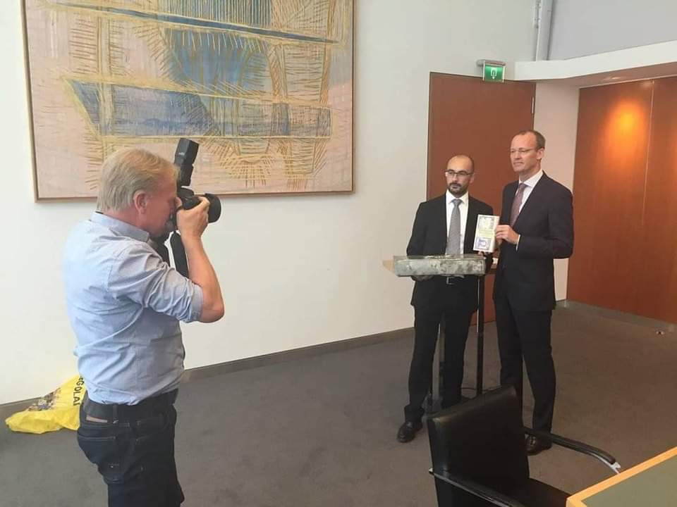 13 juli 2016: uitreiking eerste exemplaar van 'Boeiend en geboeid: een monetaire geschiedenis van Nederland sinds 1814/1816' aan de president van De Nederlandsche Bank, Klaas Knot , in de Portrettenzaal van DNB.