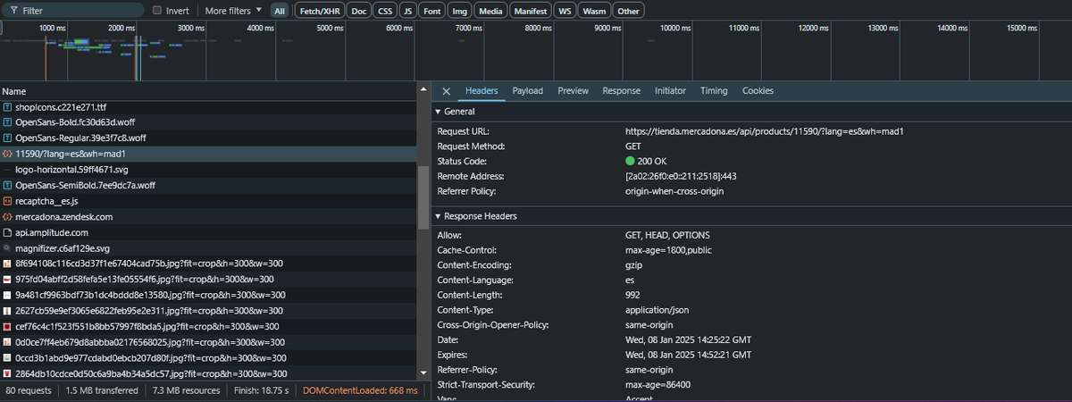 2/ Recientemente, me comentó que Mercadona había actualizado su web. Decidí echarle otro vistazo. Abrí la página, activé la consola del desarrollador… ¡y BINGO! 🎯