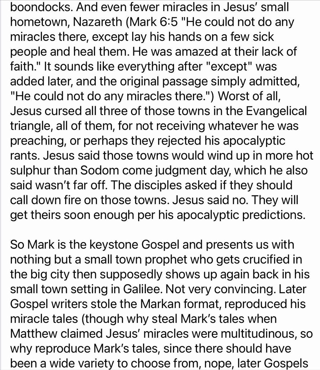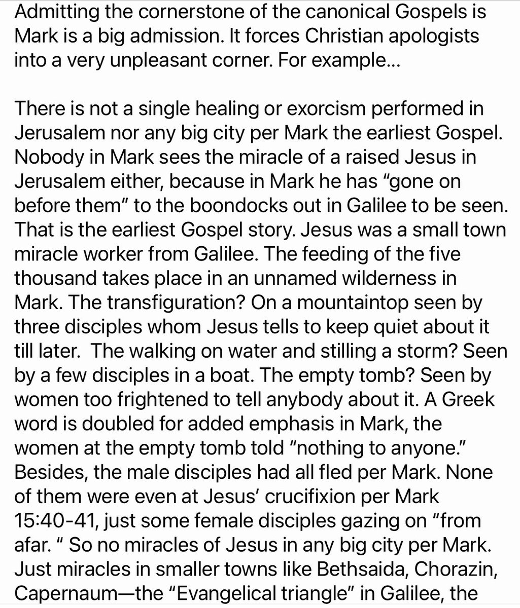 Admitting the cornerstone of the canonical Gospels is Mark is a big admission. It forces Christian apologists into a very unpleasant corner. For example… 1/