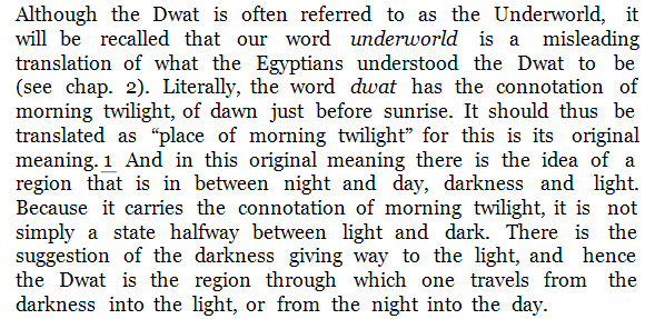 Dwat means “place of morning twilight,” the region through which one travels from the darkness into the light, or from the night into the day.