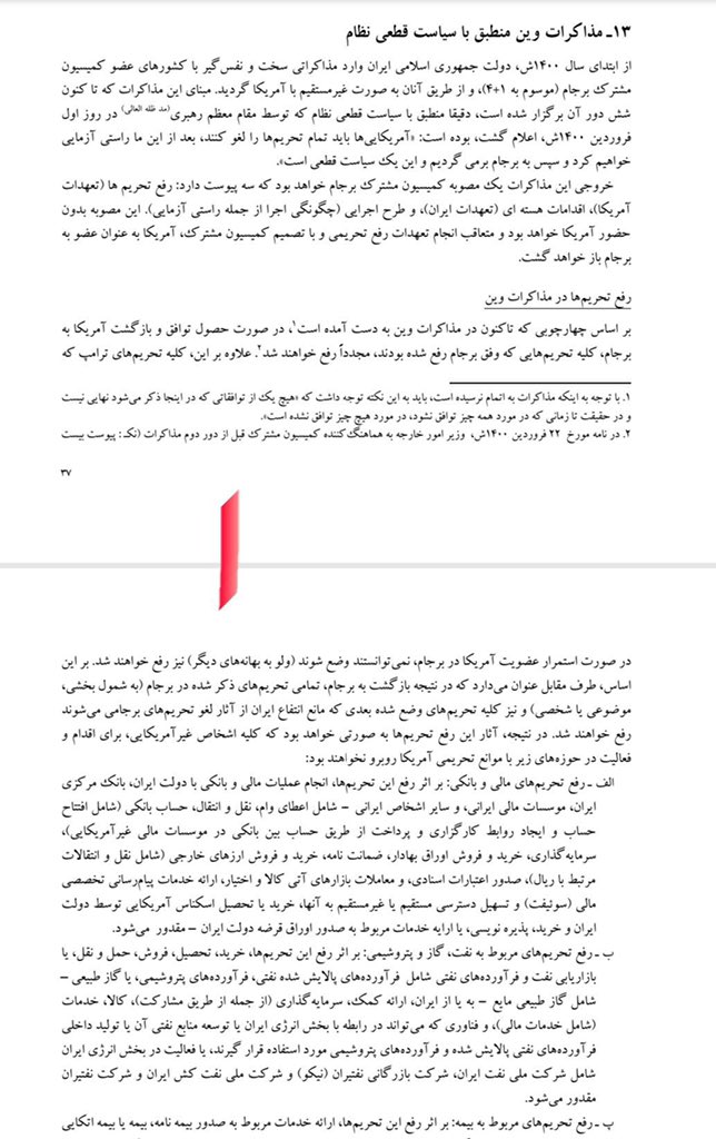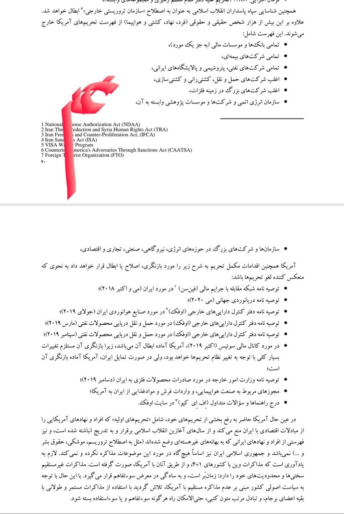 ۱)این چکیده پیشنویس تفاهم ۶ دور مذاکرات تیم ظریف برای احیای برجام در وین است که طرفین بر سر آن توافق کرده بودند.
