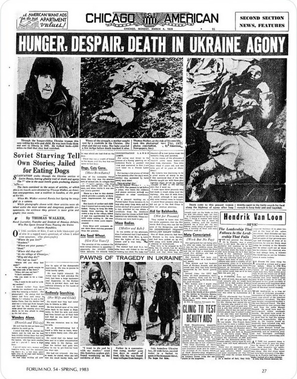Walter Duranty, a Communist apologist, had several stories published by the Jewish owned NY Times refuting the Holodomor. He claimed the Holodomor what was Nazi propaganda and infamously wrote, "there is no actual starvation."