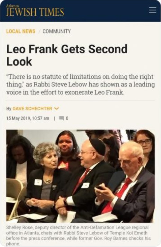 Despite the ADL's claim that anti-Semitism influenced the verdict, the conviction was upheld by 12 appellate courts, including the Supreme Court. But, Leo Frank will undoubtedly be exonerated due to relentless lobbying by the ADL, American Jewish Committee, & Rabbi Steven Lebow.