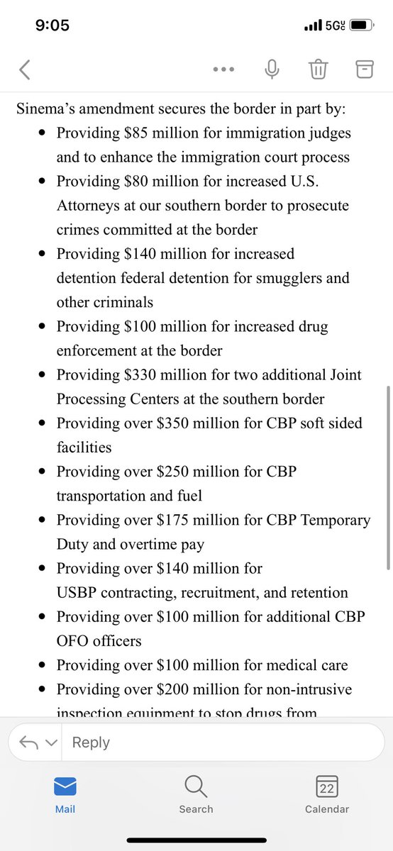 I talked to Sinema yesterday about her border security and immigration legislation push, which at that point seemed like a plan for the next Congress. Alas, border issues always find a way into eleventh hour legislative drama