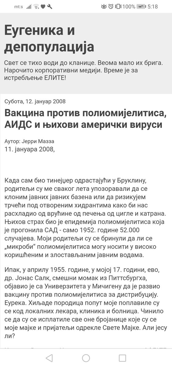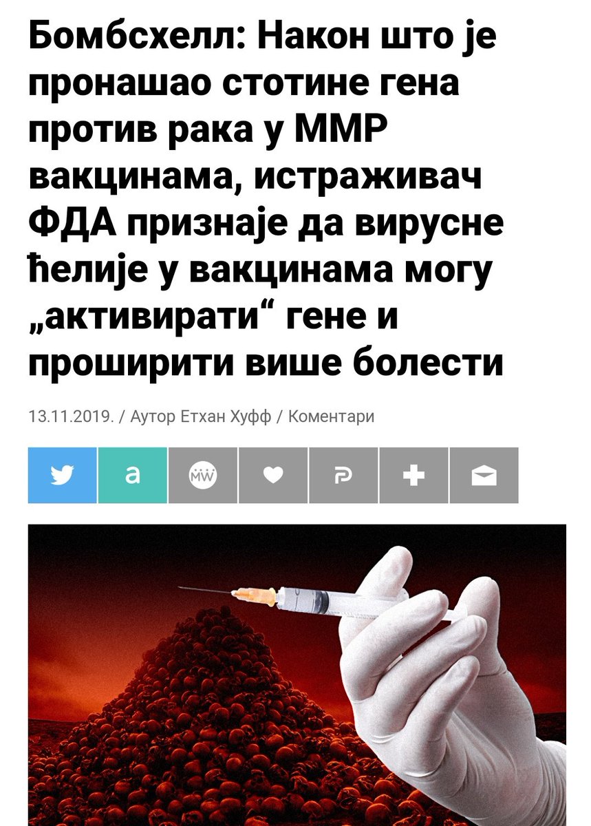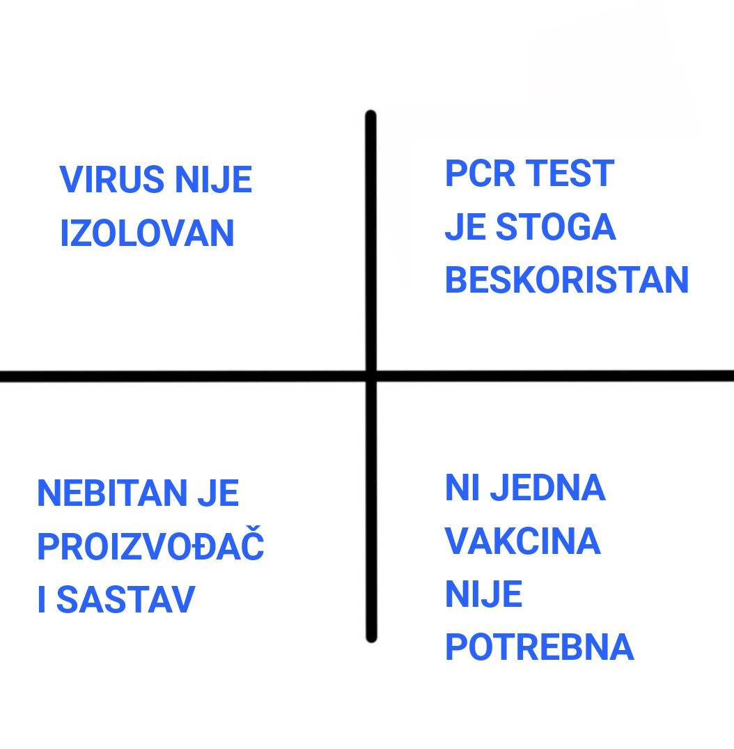 https://twitter.com/enamabula/status/1354388842233659392Nikada nije postojao nikakav virus koji se širi kroz populaciju, sve epidemije su laž, nikada nisu bile potrebne vakcine i sve su štetne, sve što su nas o tome učili u školi je laž, virusi ne mutiraju, ne mogu se puštati iz lab, jedino biološko oružje se unosi 💉 ne iz vazduha