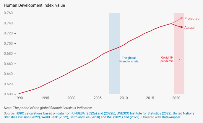 El Informe centra la idea de desarrollo en las personas, perdiendo peso indicadores como el PIB y destacando las opciones de vida de los individuos, donde la salud y la educación son fundamentales. Bajo esta perspectiva de desarrollo humano, la crisis vivida es excepcional.