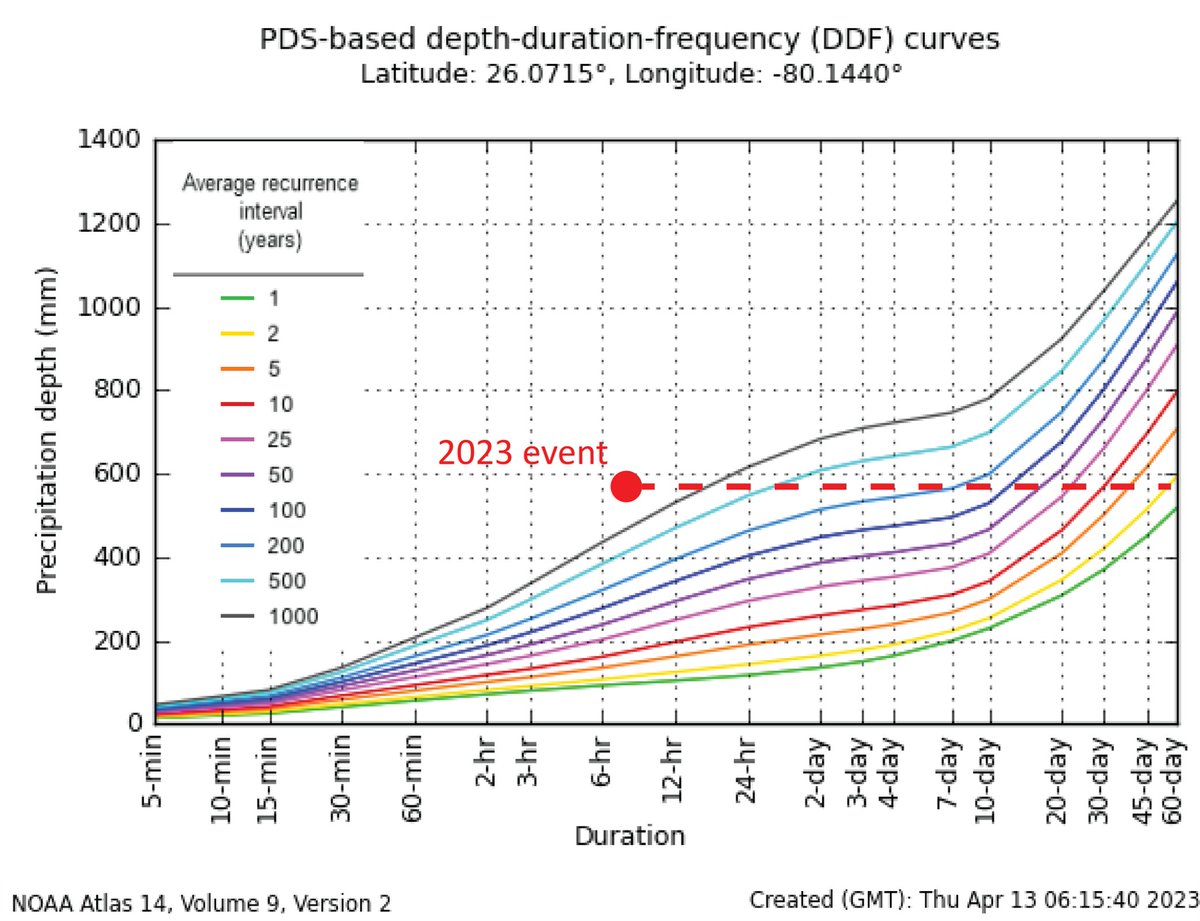 https://twitter.com/douglasthron777/status/1646349607939571712Seemingly a "black swan event" that is simply off the chart, its occurrence reveals the limitations of focusing on relatively short observational records to estimate worst-case events.