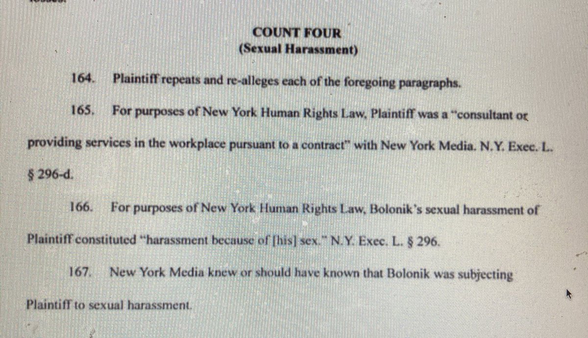 I’m having connection troubles interfering with my ability to upload complaint but here’s the novel claim of sexual harassment against a news outlet.