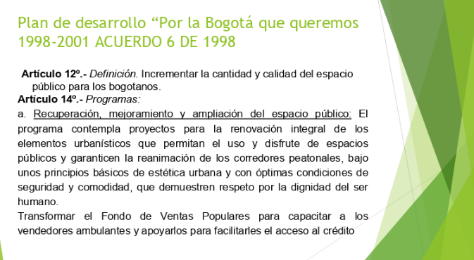https://twitter.com/GustavoBolivar/status/1355897105378902016Peñalosa en "la Bogotá que queremos" siempre habla de cantidad de espacio público a recuperar, el bien general prima sobre el particular es el lema. El espacio como un conjunto de inmuebles públicos que hay que recuperar. Para los vendedores ambulantes créditos (Y bolillo)