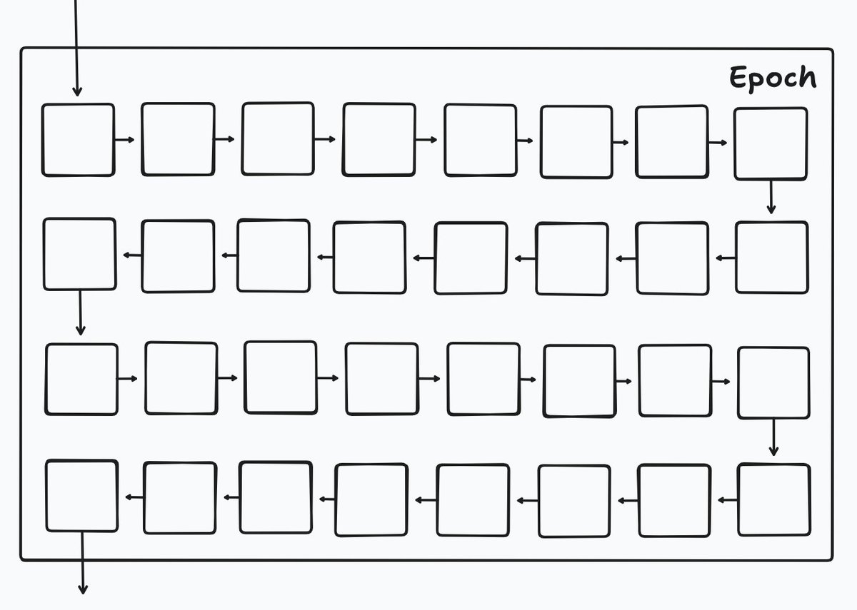 First of all, time on the Beacon Chain is subdivided into epochs and slots. One epoch is 32 slots (~6.4 minutes), and one slot is 12 seconds long.