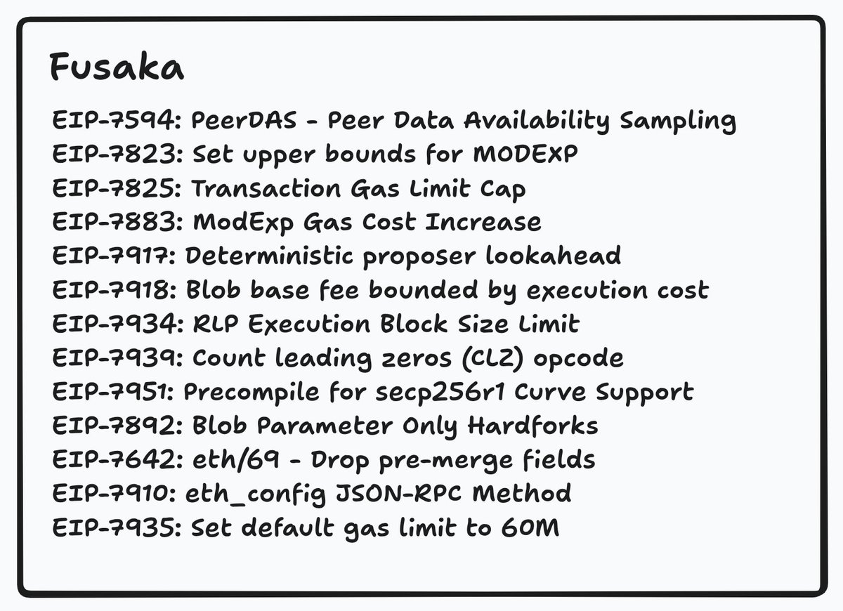 Fusaka, like any other upgrade, consists of various EIPs, which are smaller protocol changes. We will be going through each one from coolest to less cool (completely subjective ordering!)