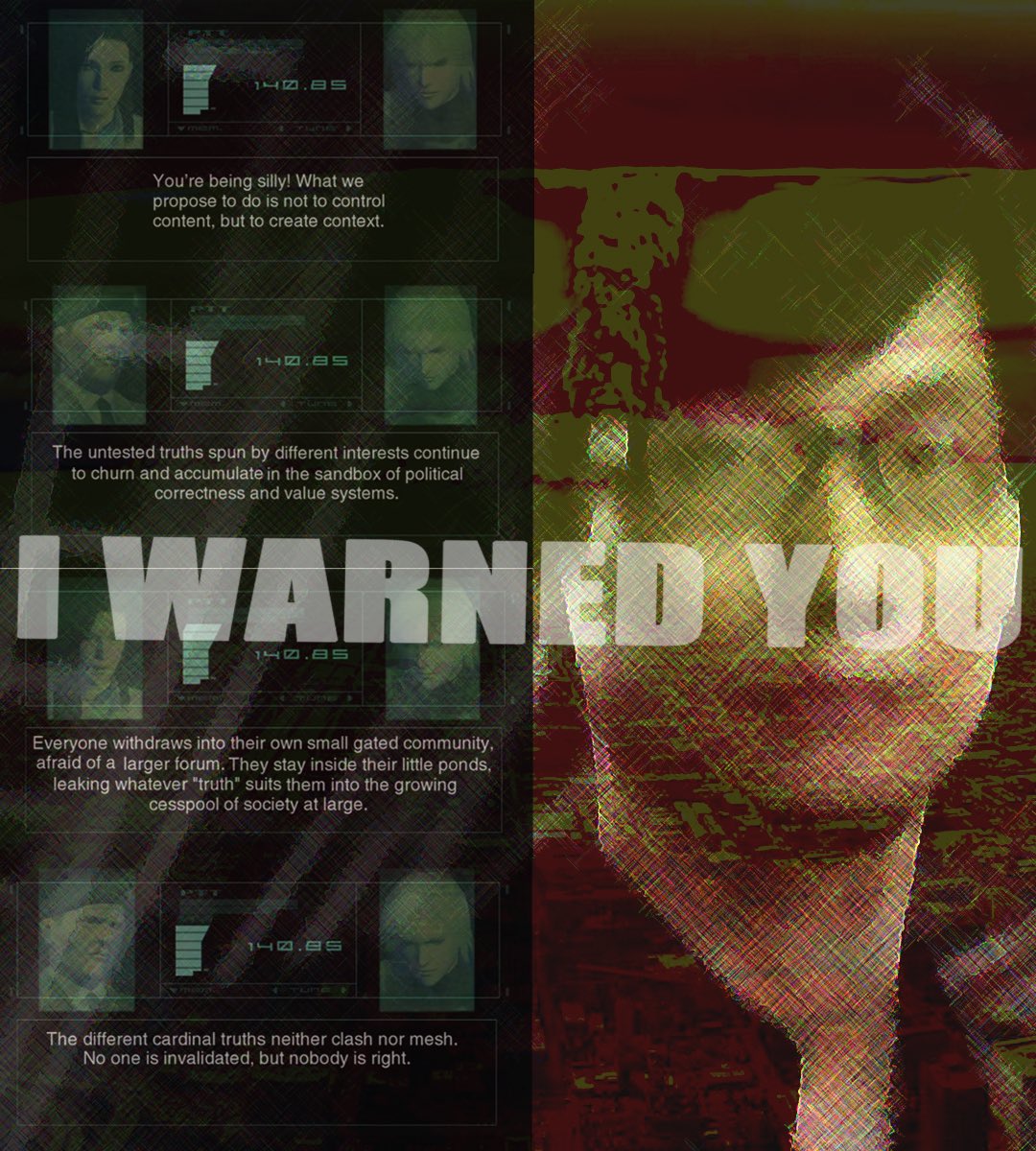If you’ve never played Metal Gear Solid 2, I at least recommend watching this cutscene from near the end of the game as some background.