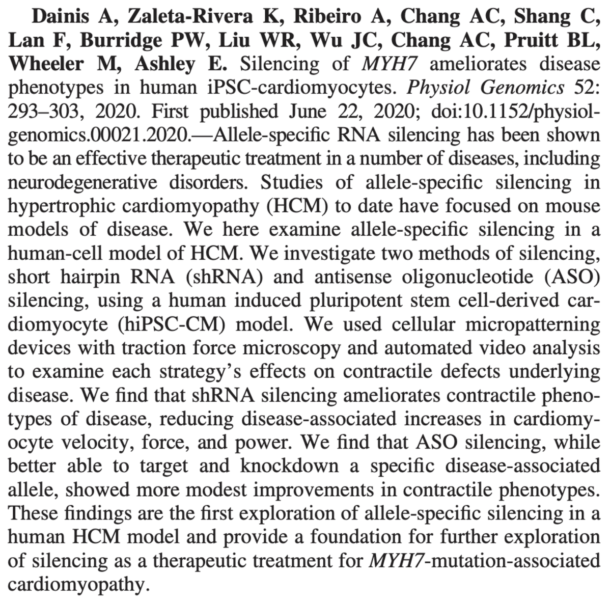 2/ This builds on our prior work showing efficacy in a humanized mouse model and extends it to a human setting (induced pluripotent stem cell cardiac myocytes)https://twitter.com/euanashley/status/1166133681917808640?lang=en