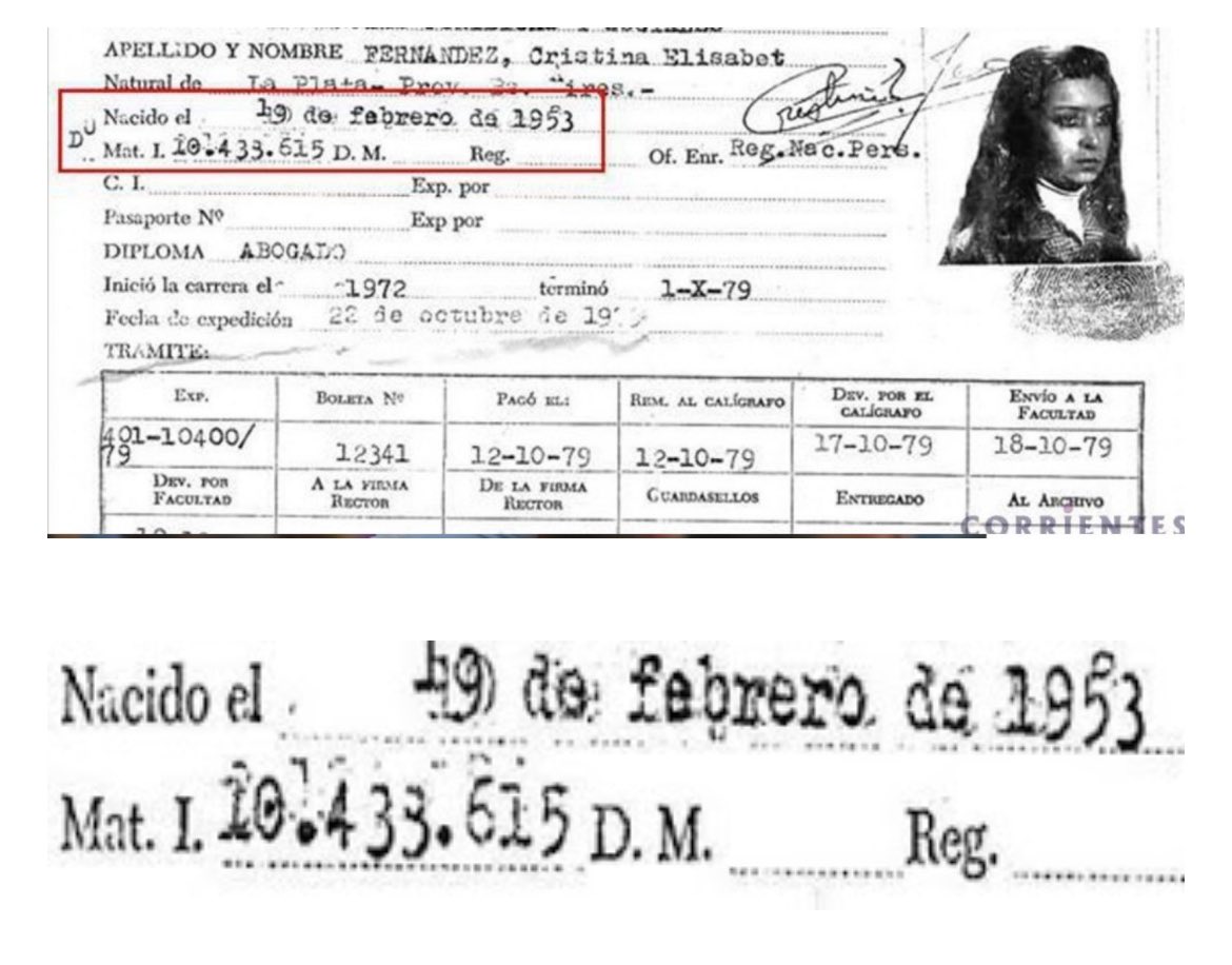 A su vez, claramente se observa cómo se han borroneado los datos de su verdadero titular, Valentín Olmos, y se pusieron encima los de la ex Presidenta de la Nación.