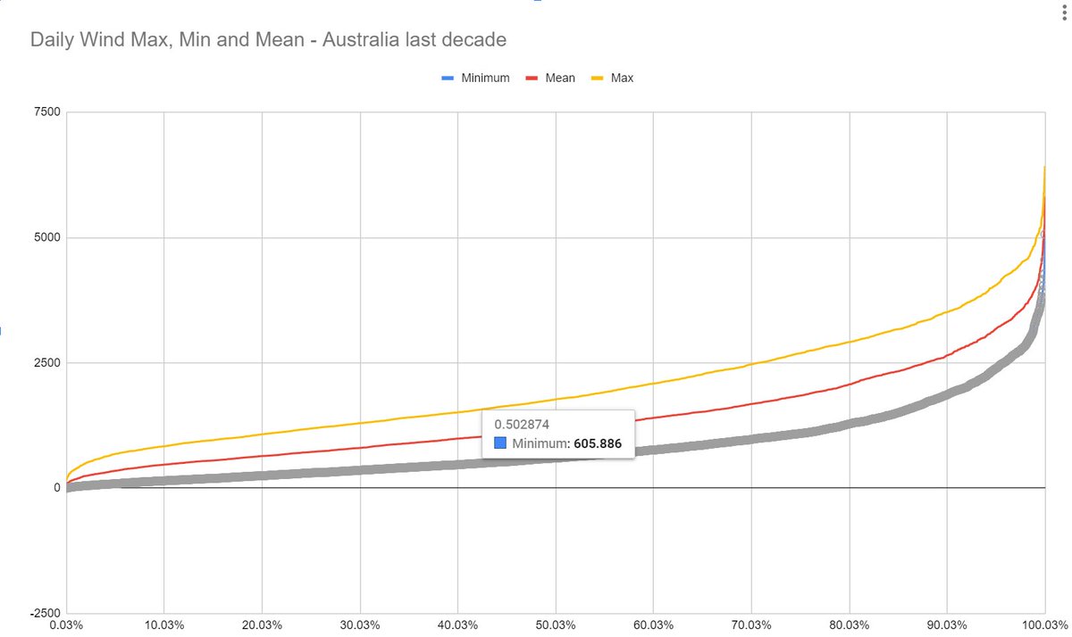 Got put onto an excellent data set from @eljmkt_nemlog on wind electricity production in Australia, when I was trying to answer the question "how often/or long is it since Australia had zero wind generation in the NEM?"