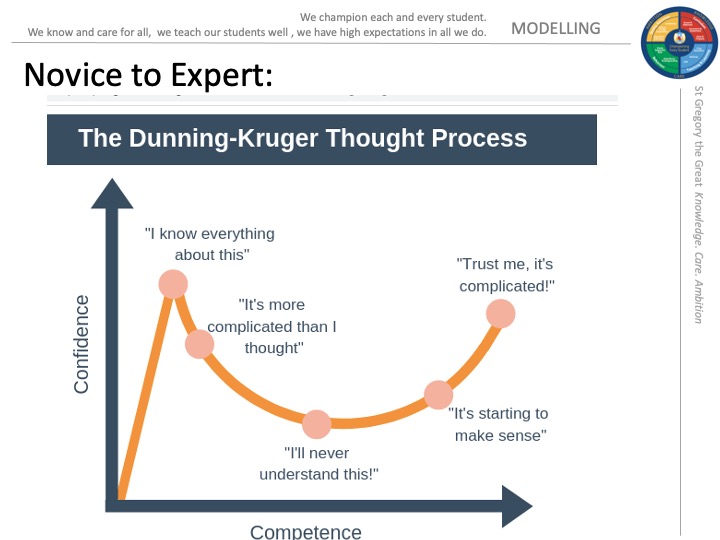 I then explained that as well as the difference between starting points, we can be sidetracked by their overconfidence, we believe they are further along the competence path than they are. In the I, We, You stages of modelling we need to return to I (expert modelling) frequently.