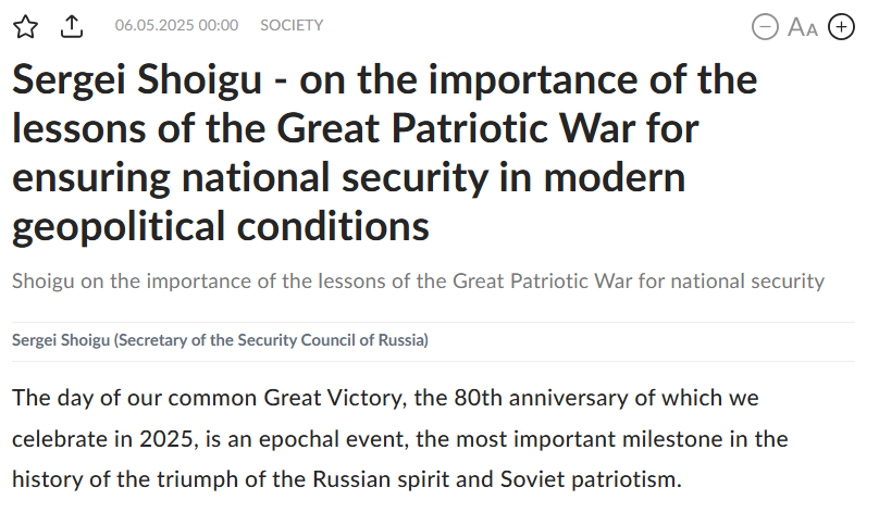 In a May 6 article in the Russian government newspaper Rossiyskaya Gazeta, entitled, “On the Importance of the Lessons of the Great Patriotic War for Ensuring National Security in Modern Geopolitical Conditions,” Secretary of the Russian Security Council Sergei Shoigu singled out Great Britain as the force that had instigated Nazi Germany to mobilize its forces to seek “living space” in Russia in World War II.