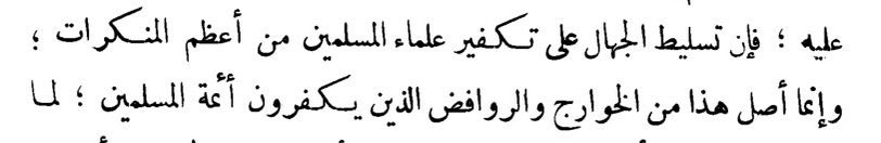 …outside the fold of Islam due to a mistake they’ve made in their theology [kalām]... for allowing laymen [juhhāl] to deem the scholars of Muslims outside the fold of Islam is from the greatest evil actions [munkarāt].