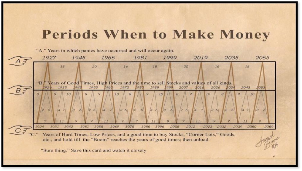 Aslında 1872 de Ohio'lu başarılı bir iş adamı olan George Tritch tarafından oluşturulduğu söylenen bu şaşırtıcı döngü. Yine Ohio'lu bir çiftçi olan Samuel Benner in 1875 de kullanması ile yayılmış olabilir...