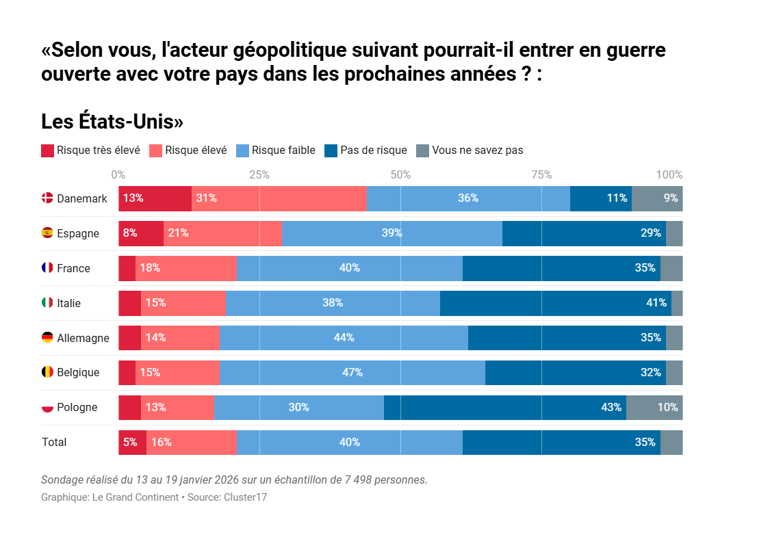 A month ago just 10% thought the US would start a war with their country, now it's up to 21%. China is down from 14% to 9% while Iran remains at 18%.