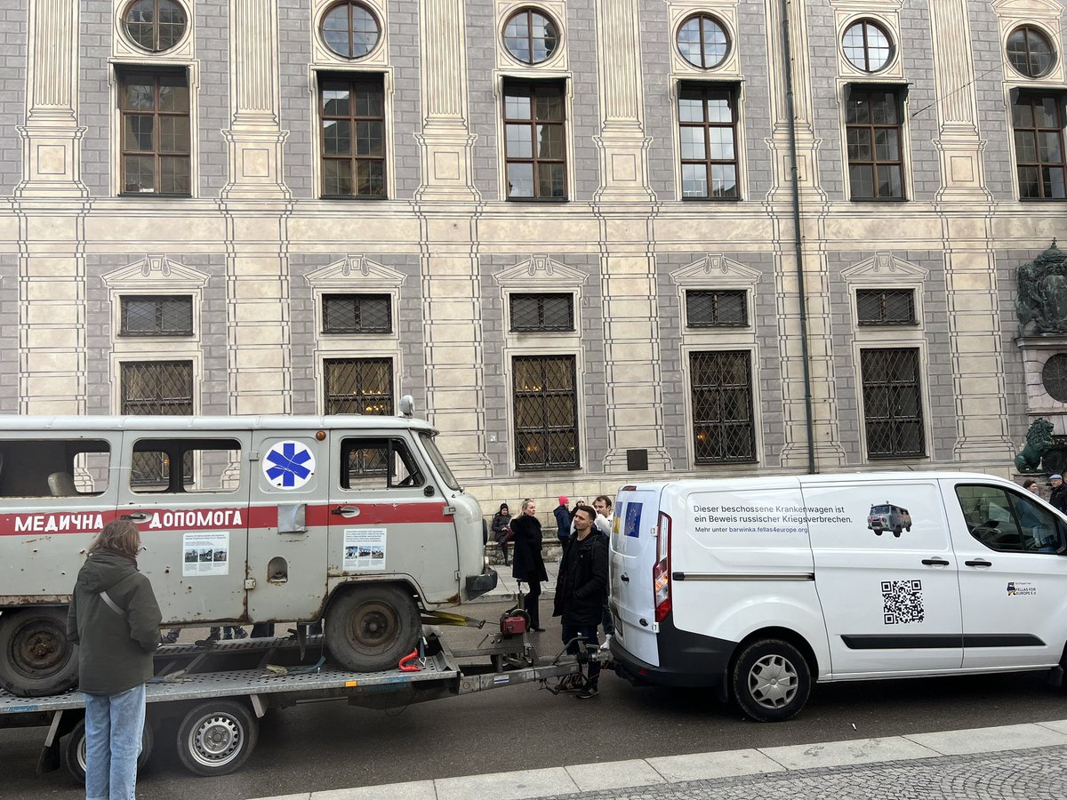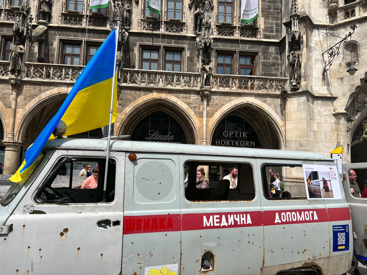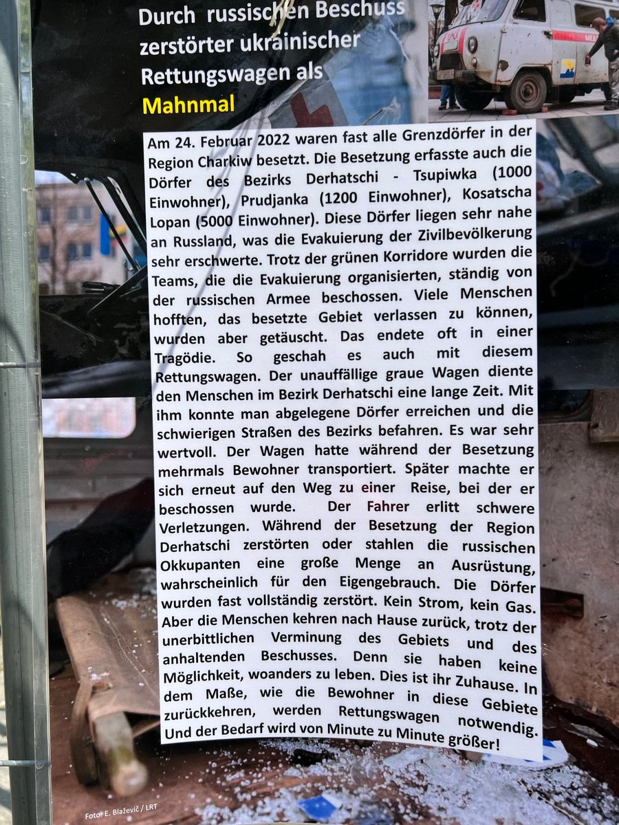Während der Kämpfe um die Region Charkiw im Herbst 2022 beschossen russische Soldaten wie immer gezielt zivile Einrichtungen. In Derhachi wurde dieser Rettungswagen eingesetzt, um zivile Verletzte zu evakuieren. Dabei wurde er selbst beschossen, der Fahrer schwer verletzt. 2/