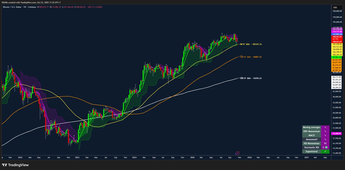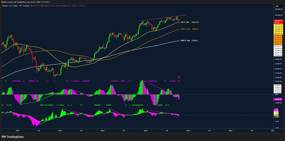 Notably, the 50 wma (typically bull/bear line in the sand) sits precariously around the ST.