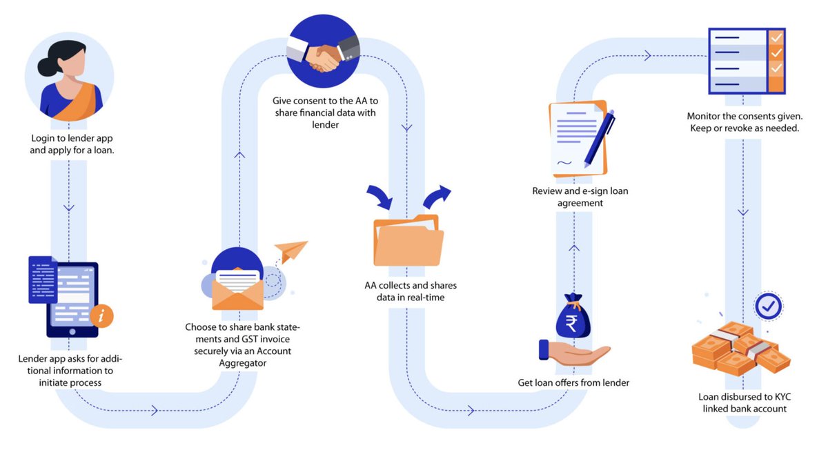 Account Aggregators (AA) are non-banking financial companies, licensed by RBI, that act as a bridge, to collect data from Financial Information Providers(FIP), and share the data with, Financial Information Users (FIU).