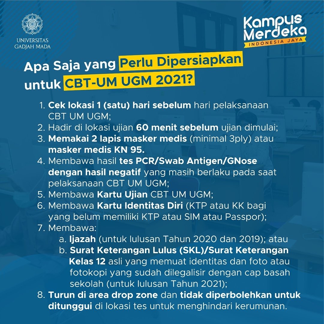 Yang perlu dipersiapkan untuk CBT-UM (UTUL) UGM 2021 adalah