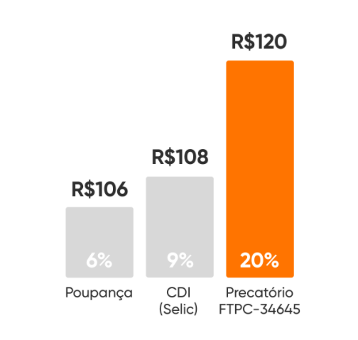 Só para ilustrar melhor, uma projeção conservadora de quanto você teria ao final de um período de 20 meses investindo em cada um dos produtos abaixo.