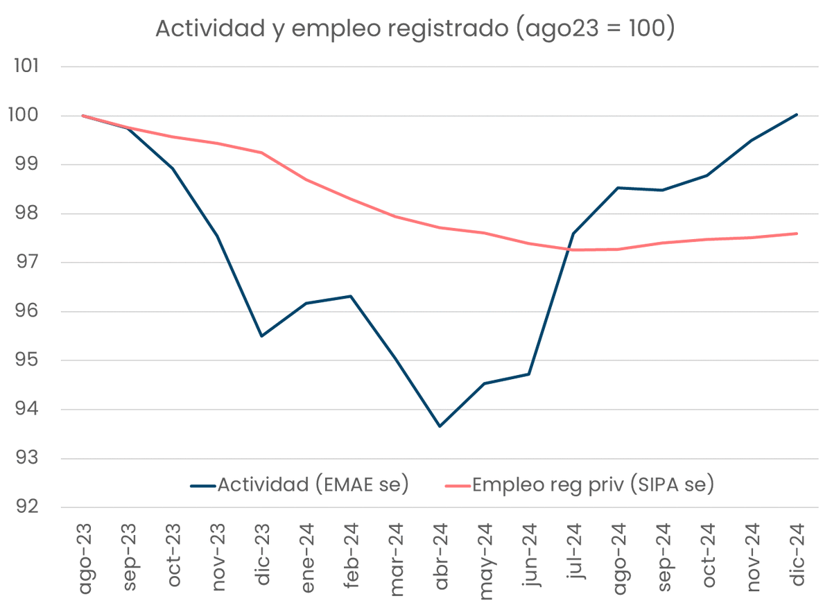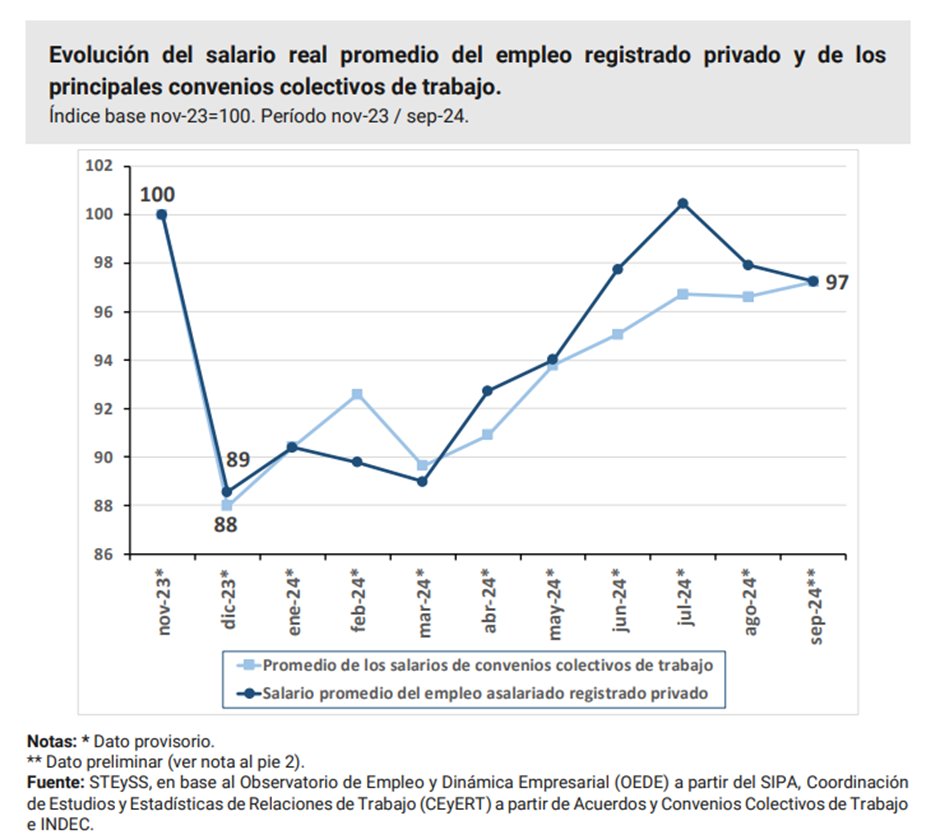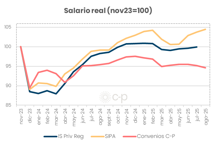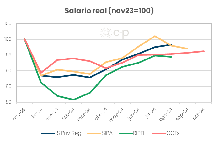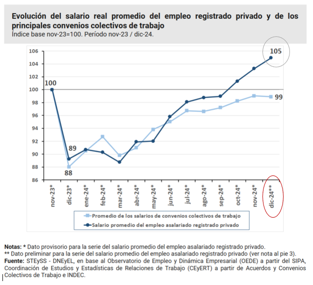 Los datos del SIPA, fuente de datos que estaba dando el mejor crecimiento del salario real, bien por encima del resto de los indicadores, mostraba hace un mes que en dic24 estábamos 5% arriba de nov23.