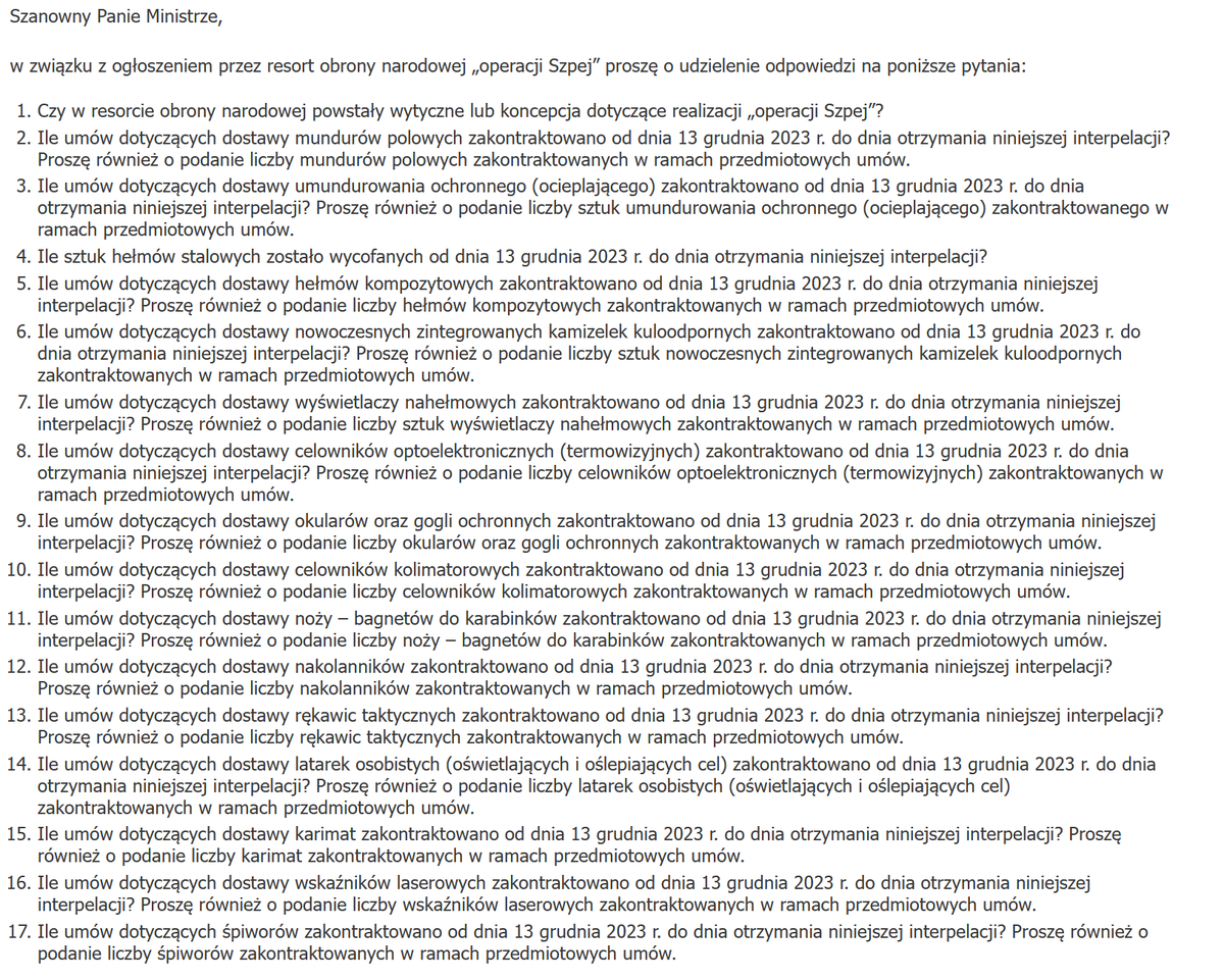 Jakiś czas temu były MON złożył interpelację dot. Operacji Szpej, w której zawartych zostało kilkanaście pytań. Wczoraj pochwalił się odpowiedzią na nią i dodał parę słów od siebie, krytycznych wobec OpSzp.