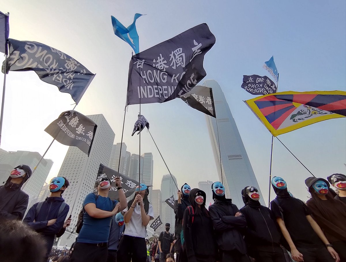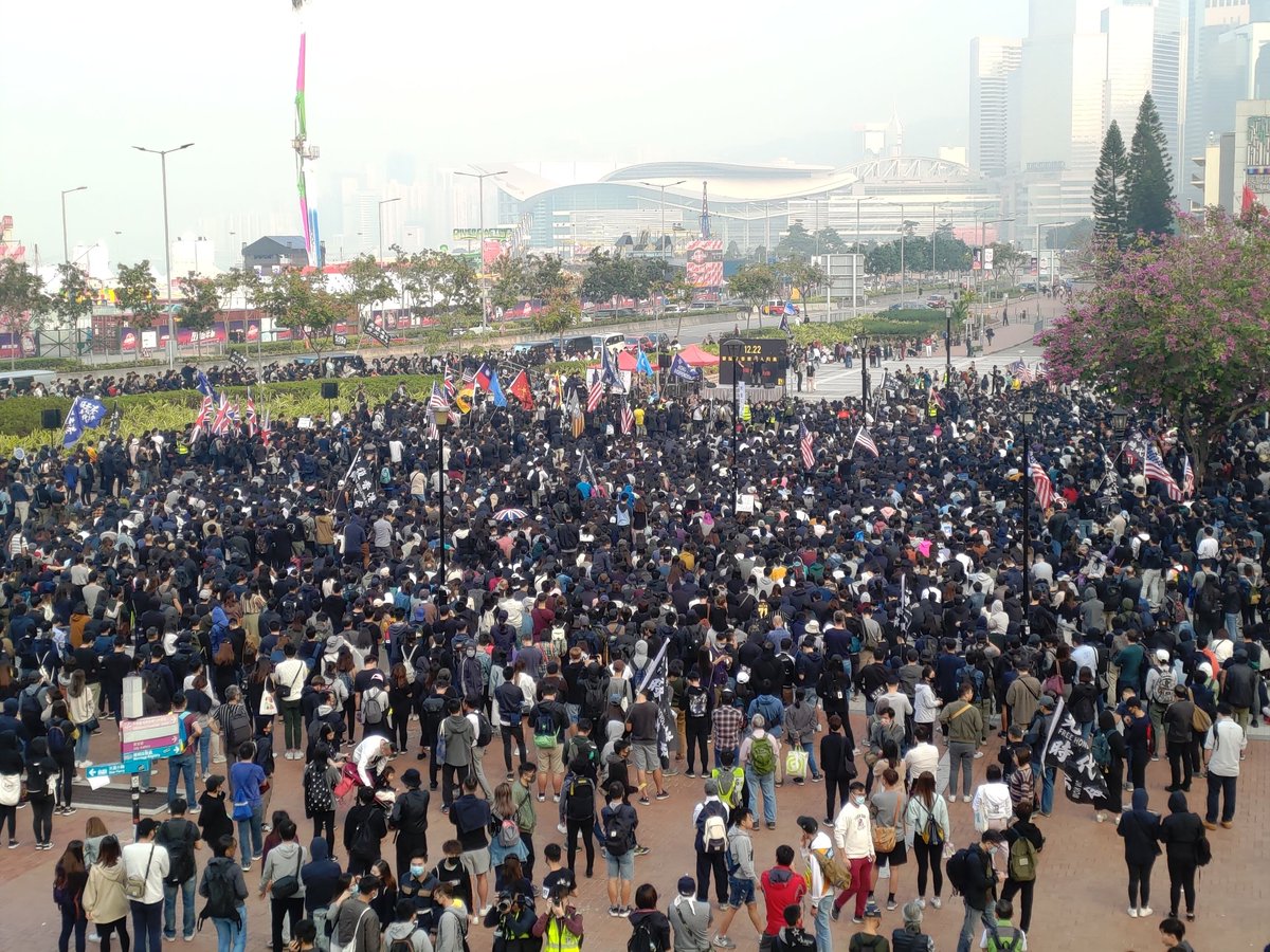 The crowd has grown significantly since the start of the rally. Ppl are waving many types of flags around, but no flag of China spotted. #HongKongProtests