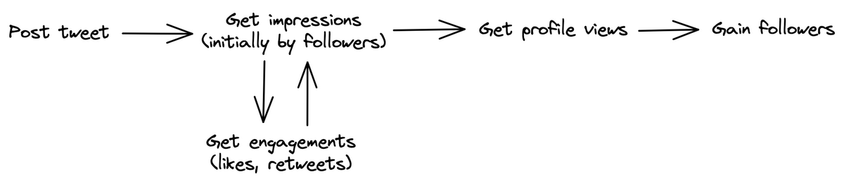 Post tweet → Get impressions → Get engagements → Get profile views → Gain followers.