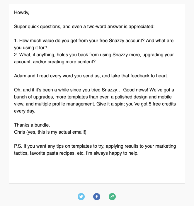First, we sent out an email asking for feedback to all existing free users.