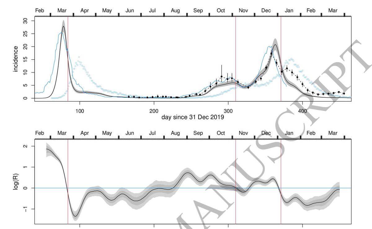 There are excellent discussions of excess death (which they estimate at around 95,000 in UK), pandemic modelling, and the actual Covid and Long Covid risk, but this graph particularly stood out for me because I kept banging on about this at the time...