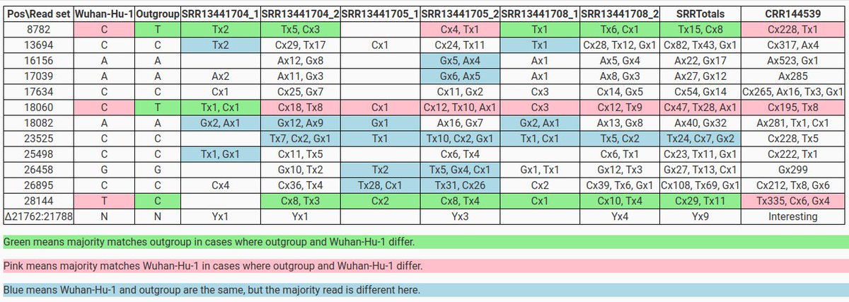 that in three places the reads matched Pangolin viruses. Not only that, but in those locations where they matched the Pangolin viruses, Wuhan-Hu-1 had the same thing as the much more closely-related bat viruses RaTG13 and the BANALs. This "Pangolin Paradox" is hard to explain...