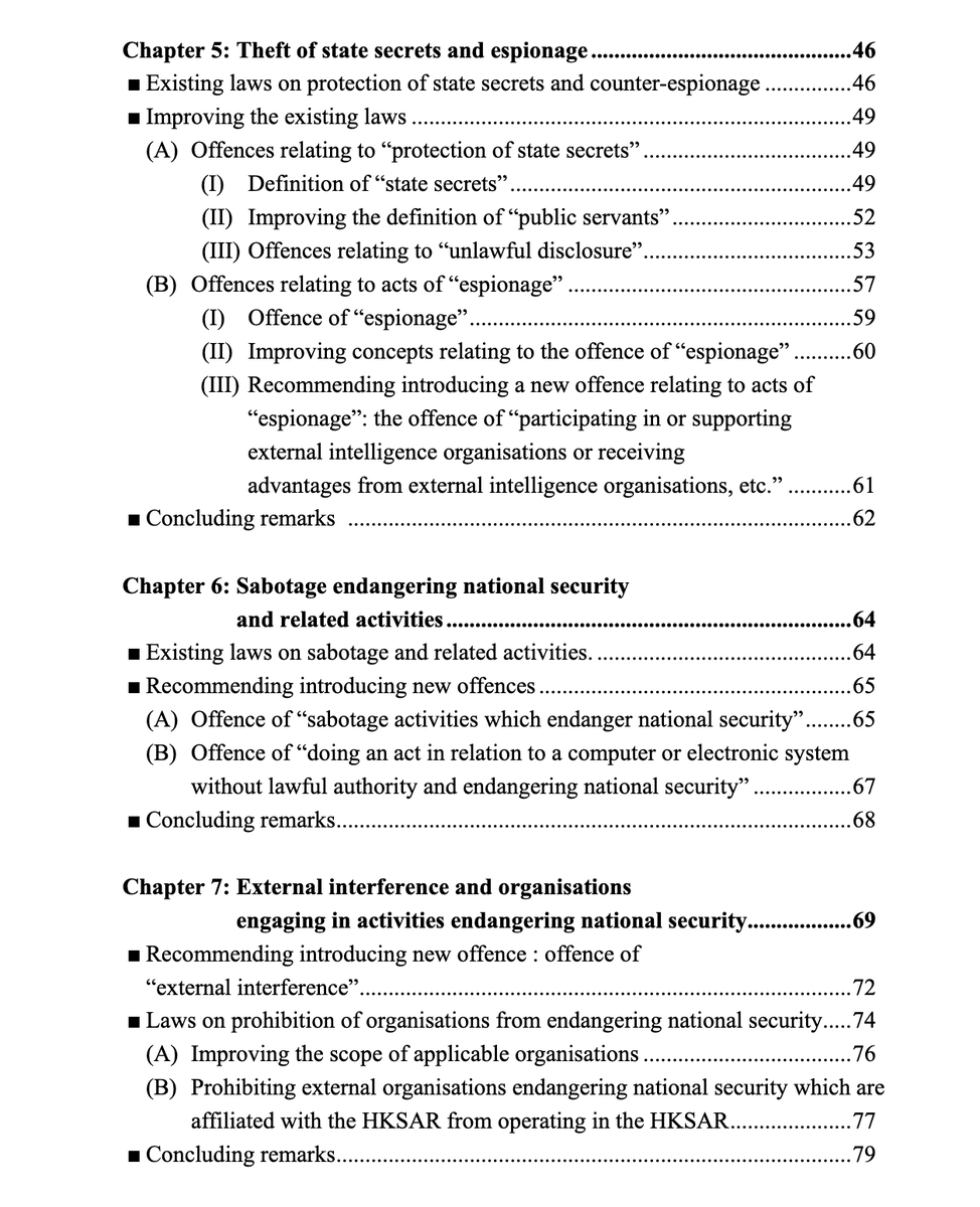 Key parts: Theft of state secrets and espionage, Sabotage endangering national security and related activities, External interference and organisations engaging in activities endangering national security.