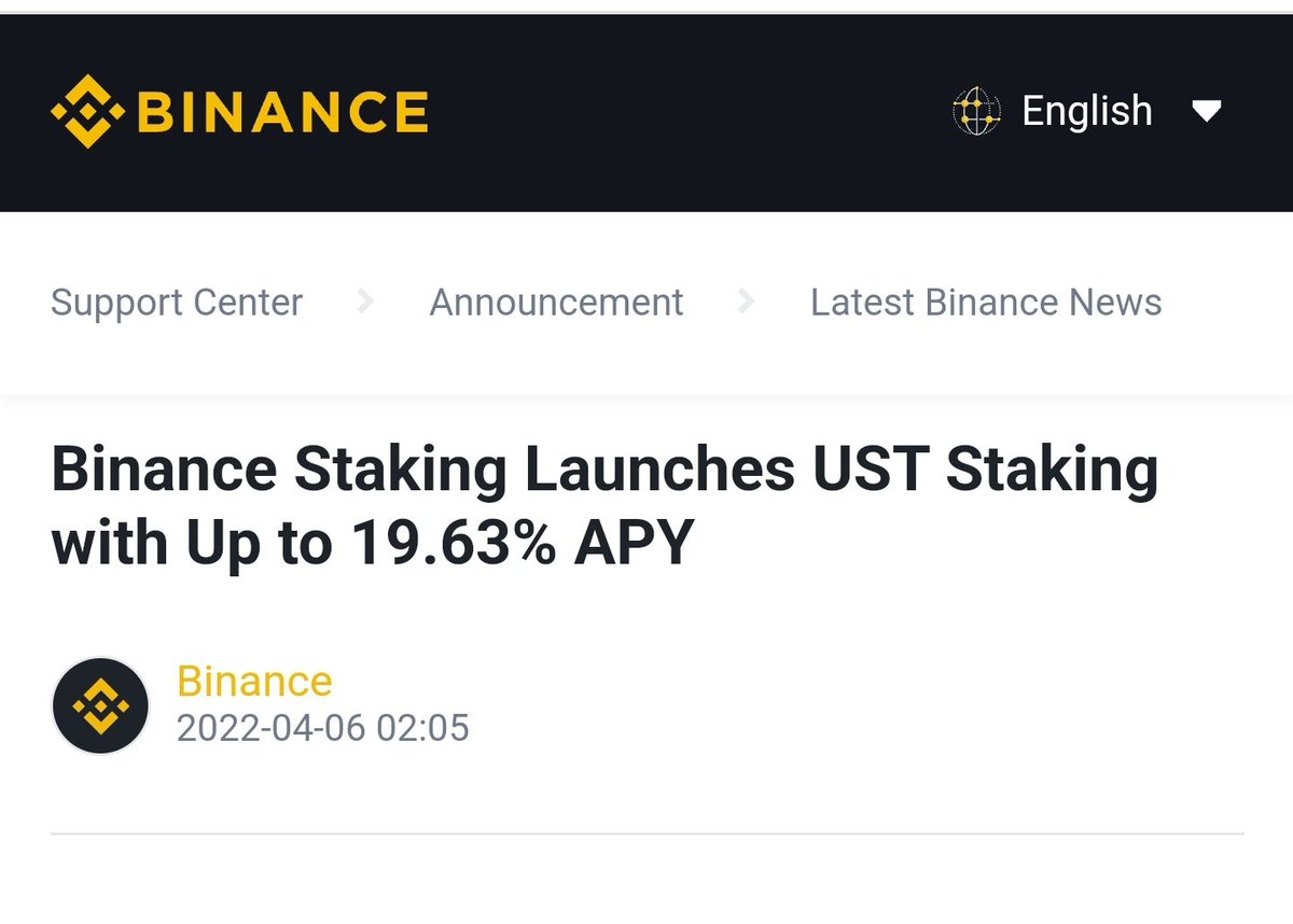 Today #Binance launch $UST staking with up to 19.63% APY interest