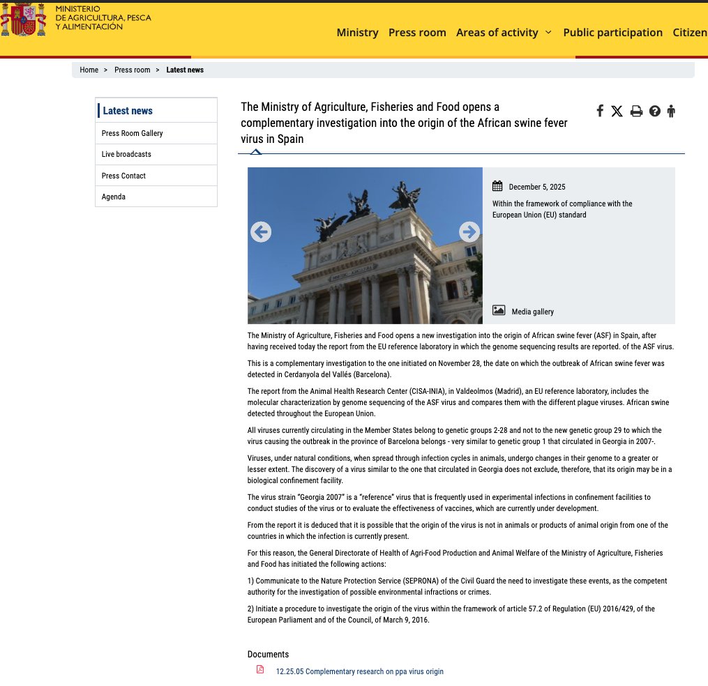 All [ASF] viruses currently circulating in the Member States belong to genetic groups 2-28 and not to the new genetic group 29 to which the virus causing the outbreak in the province of Barcelona belongs - very similar to genetic group 1 that circulated in Georgia in 2007.