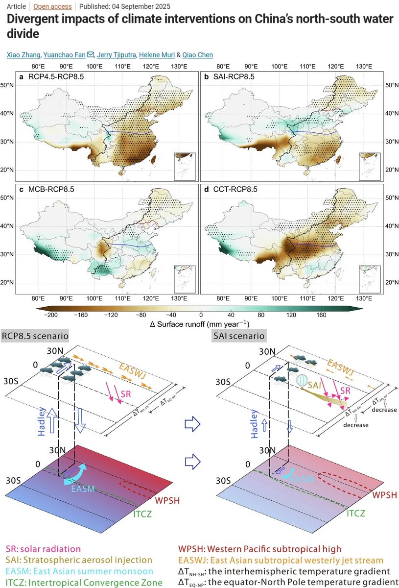 🚨New study finds #SolarGeoengineering methods have divergent hydrological outcomes in China.