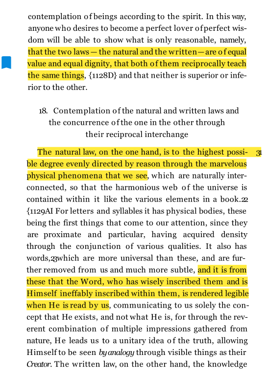 St. Maximus claims that there are two Laws (a natural and a written Law) that complement each others. God inscribed Himself in nature, therefore, by observing the natural phenomena and reasoning on them, we can come to the conclusion that God is Our Creator (Ambiguum 10, 17-18)