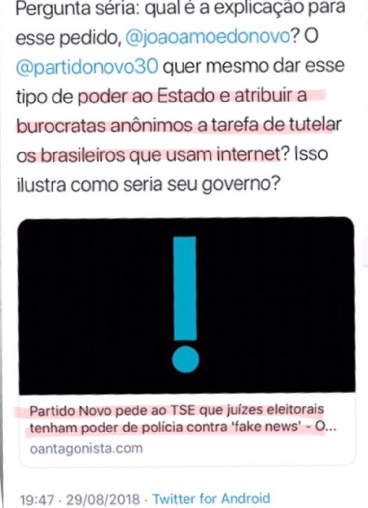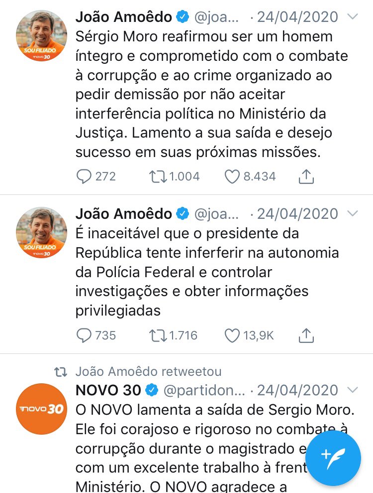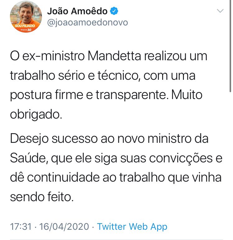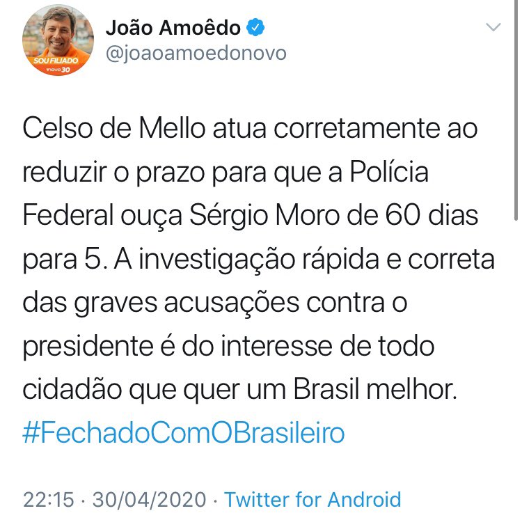 Quem ainda se deixa enganar com o politicamente correto do Novo de João Amoêdo é conivente com suas atitudes a favor do establishment da Corrupção e dos abusos do STF, logo é contra a legitimidade do Governo Bolsonaro. #GolpeDeEstado